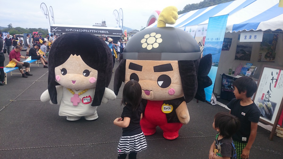 今年も沢山の参加者の中、天橋立ビューランドキャラクター「ビュークン・ランちゃん」と京都府のキャラクター「まゆまろ」宮津市のキャラクター「ガラシャちゃん」「たぁくん」と会場内に登場いたしました。