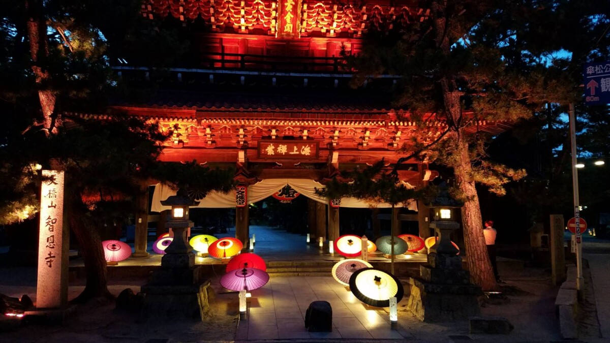 〇天橋立まち灯りぶらり散策 ~智恩寺山門和傘灯り~