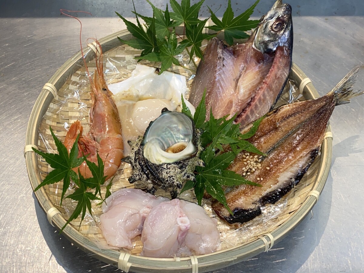 魚は産地直送で新鮮さが売りです。無煙ロースターで焼きながらお召し上がりください。(食材はその日の仕入により異なります。)